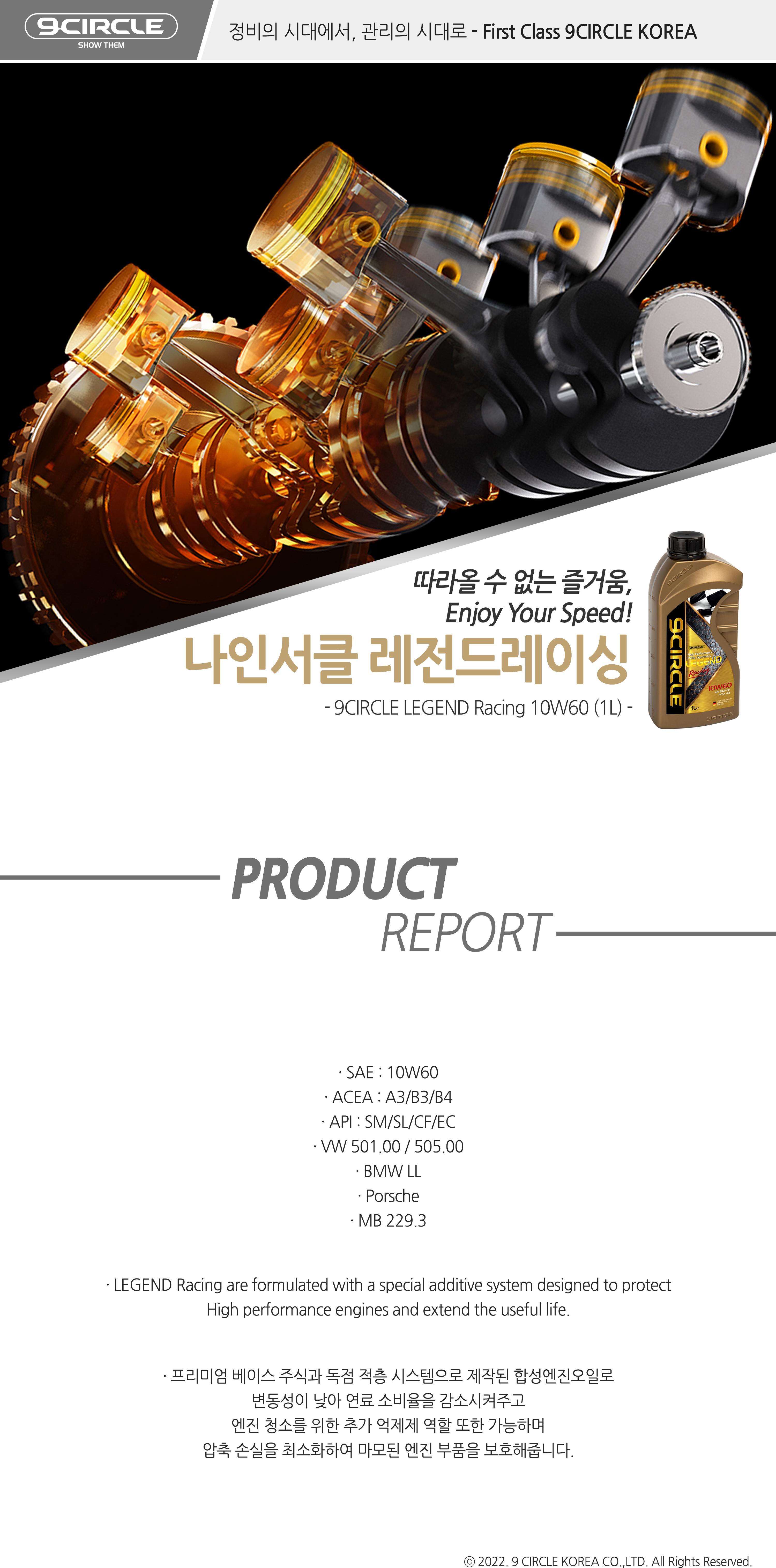 | 1. 품명 및 모델명 | 자동차 엔진오일 / 나인서클 레전드레이싱 10W60 |