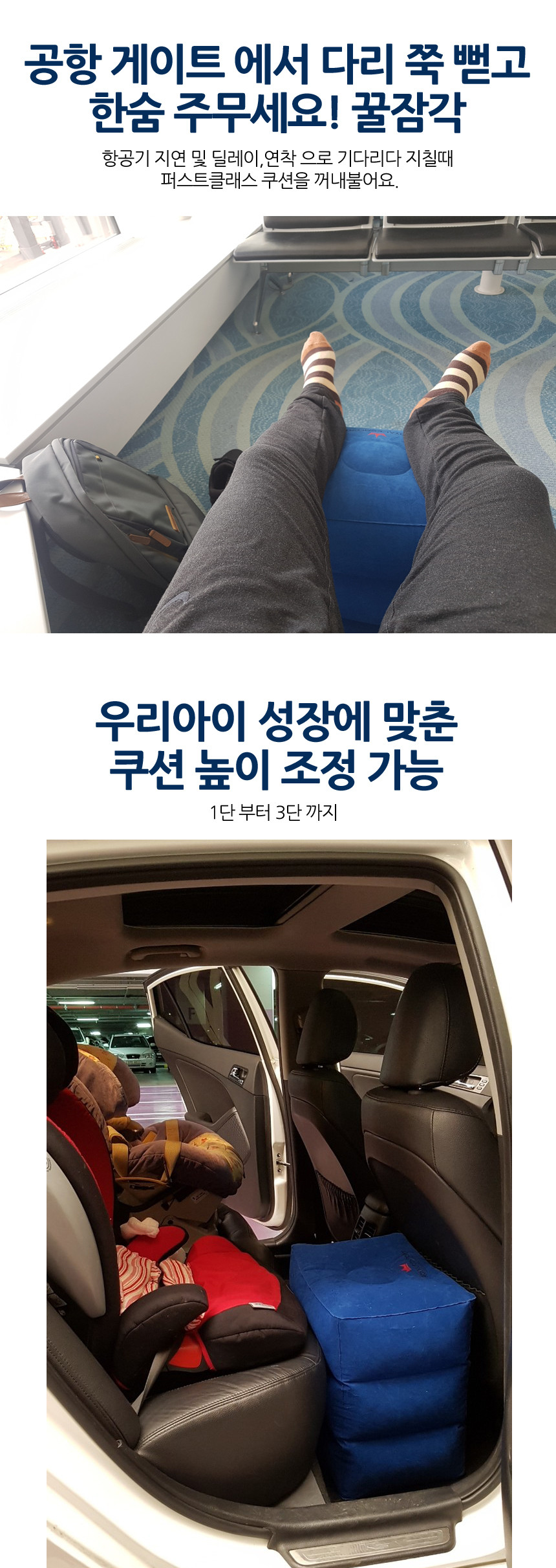 아이들도 편안해 하는 차량용 발쿠션 발받침 에어쿠션