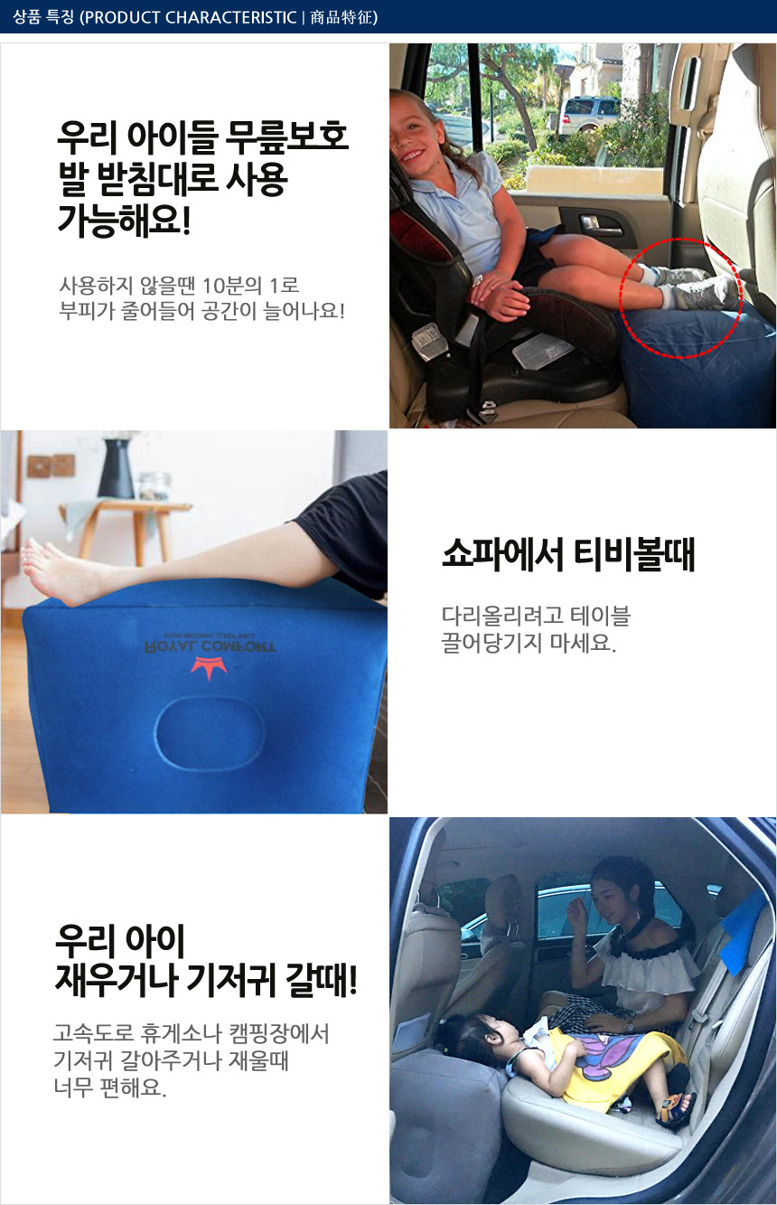 1. 품명 및 모델명 아이들도 편안해 하는 차량용 발쿠션 발받침 에어쿠션