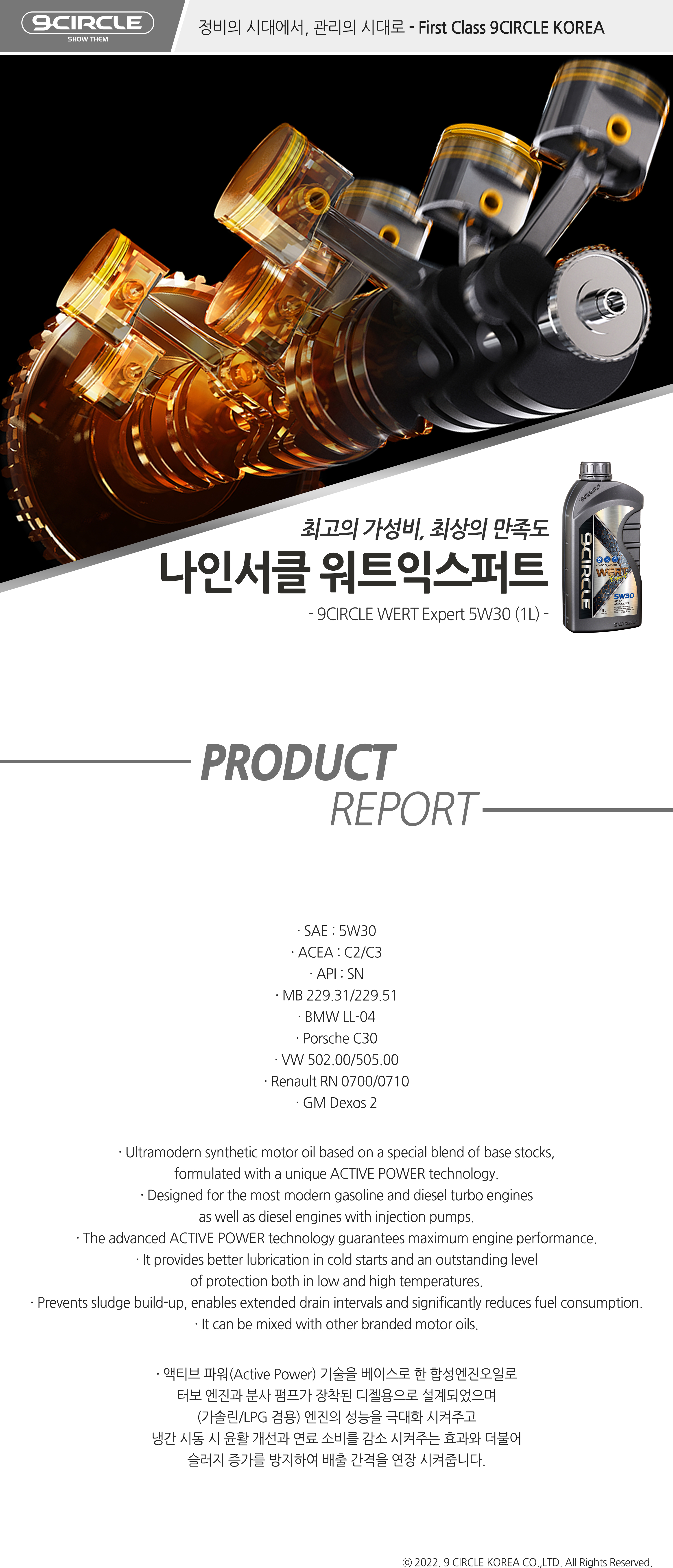 | 1. 품명 및 모델명 | 자동차 엔진오일 / 나인서클 워트익스퍼트 5W30 |